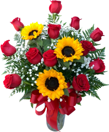 Dz Red Roses & 3 Sunflowers Dz red roses arranged with 3-sunflowers in a vase. $105.00 SKU:R12S Quantity * This product is unavailable.
